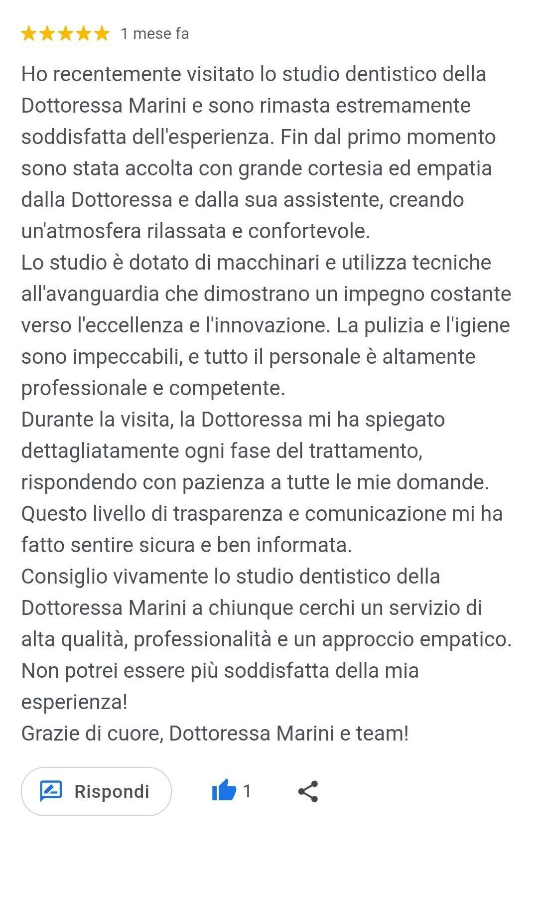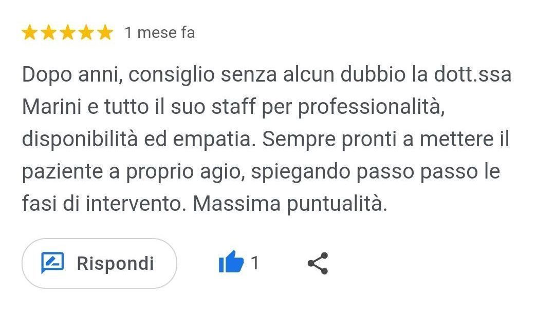 Lo Studio Dentistico della Dott.ssa Marini desidera ringraziare di cuore tutti coloro che lasciano una recensione su Google.
